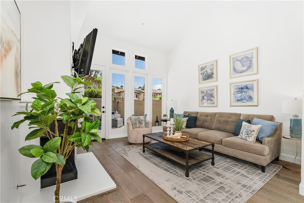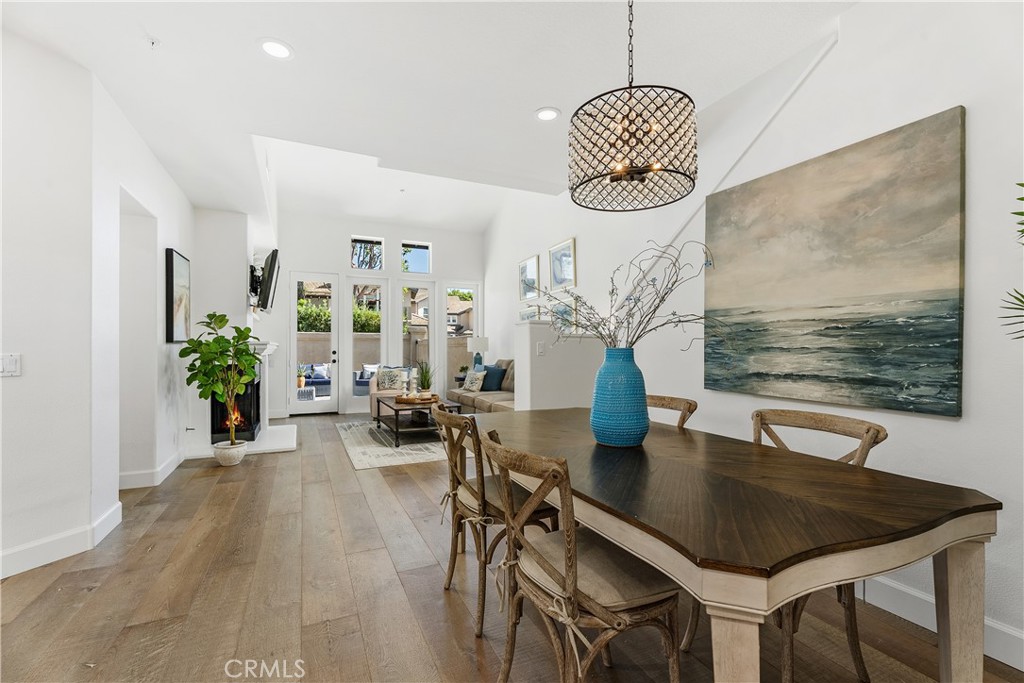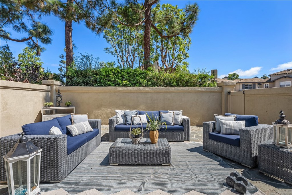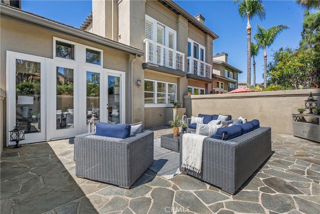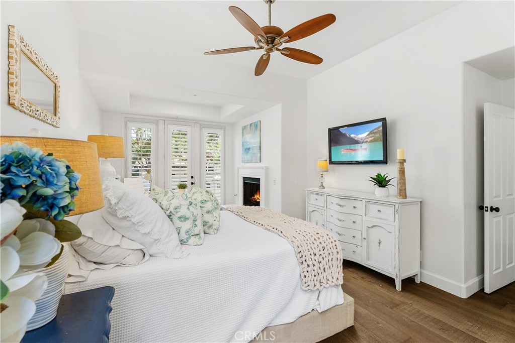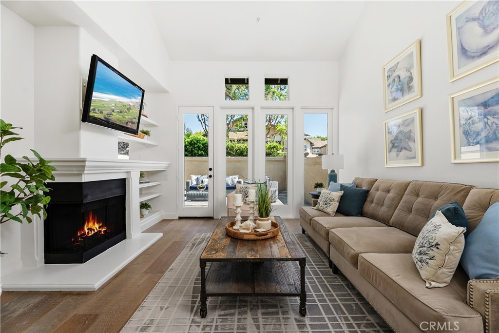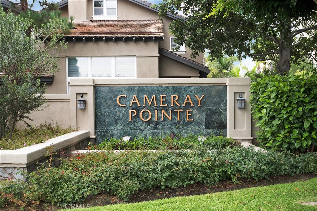This two-bedroom, two-and-a-half-bathroom townhome located in the gated community of Cameray Pointe in Bear Brand Ranch boasts light-filled interiors with high ceilings, creating an airy and open feel throughout. As you enter the home you are welcomed with soaring ceilings and high windows introducing ample natural light while preserving privacy and maximizing usable wall space. The living area features built-in shelving, a cozy fireplace and French door leading to the back. Stepping outside, the large enclosed patio offers additional living space, perfect for outdoor relaxation or entertaining. The engineered wood flooring lend a contemporary aesthetic, complemented by new paint throughout. The kitchen features marble countertops, breakfast nook and pantry plus a large window overlooking the lovely hardscaped patio with custom pavers and a gate access to the community. The primary bedroom suite includes an en-suite bathroom and a spacious walk-in closet, as well as a cozy fireplace, providing a private retreat. The second bedroom also features an en-suite bathroom, ensuring privacy and convenience. Centrally located between bedrooms you will find an upstairs full-size laundry closet for added convenience. Cameray Pointe townhomes have access to the community's amenities, including a pool and spa, offering a refreshing respite on warm days. The gated community and private setting provide a serene and secure living environment. All of this and located within walking distance to Ocean Ranch Shopping center with fine and casual dining, a gym, Trader Joe's, Cinepolis and much more!