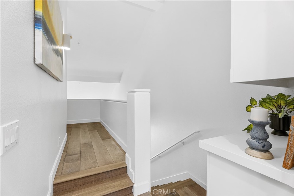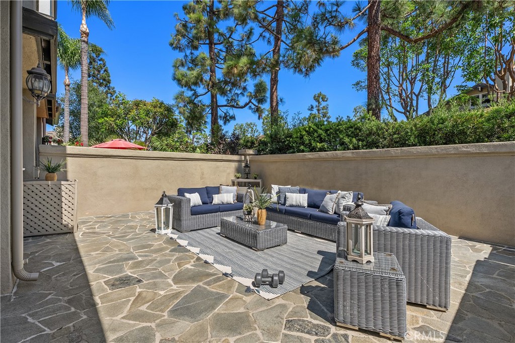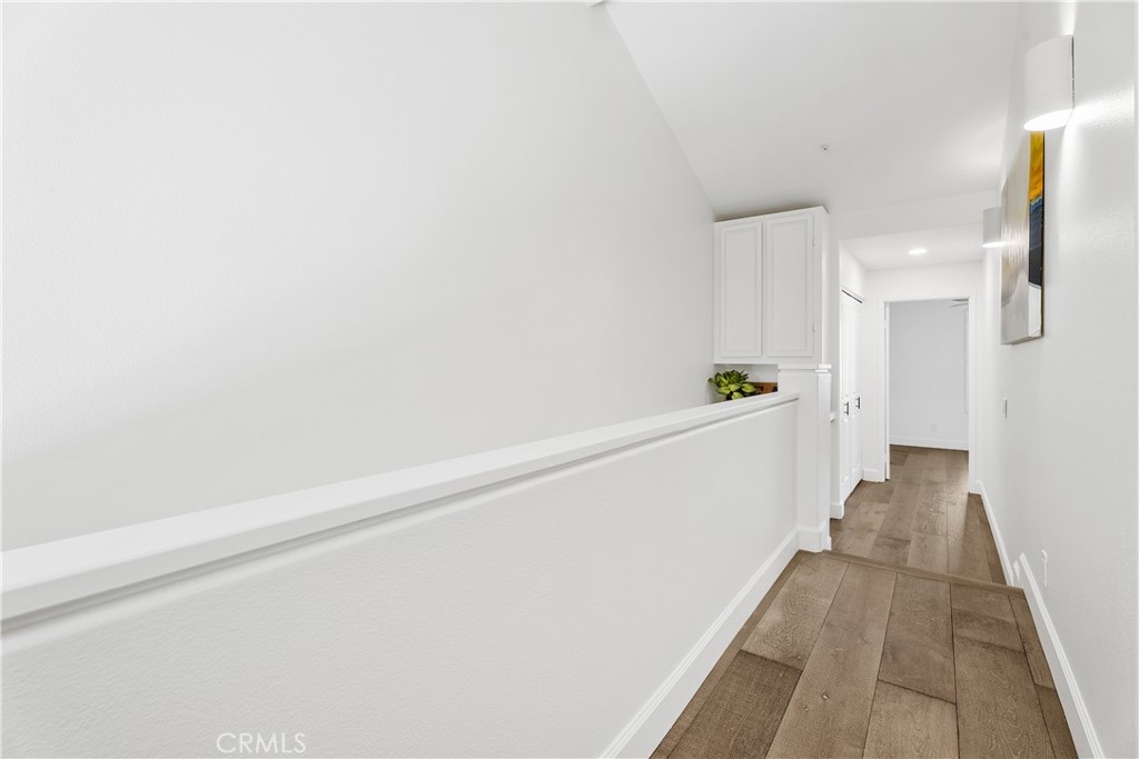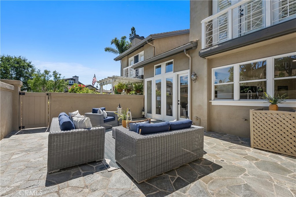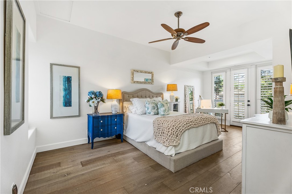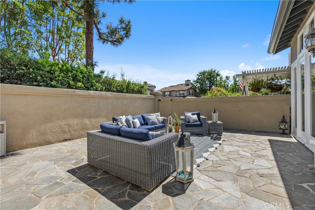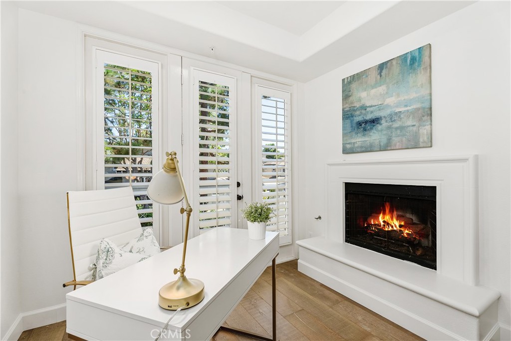 This two-bedroom, two-and-a-half-bathroom townhome located in the gated community of Cameray Pointe in Bear Brand Ranch boasts light-filled interiors with high ceilings, creating an airy and open feel throughout. As you enter the home you are welcomed with soaring ceilings and high windows introducing ample natural light while preserving privacy and maximizing usable wall space. The living area features built-in shelving, a cozy fireplace and French door leading to the back. Stepping outside, the large enclosed patio offers additional living space, perfect for outdoor relaxation or entertaining. The engineered wood flooring lend a contemporary aesthetic, complemented by new paint throughout. The kitchen features marble countertops, breakfast nook and pantry plus a large window overlooking the lovely hardscaped patio with custom pavers and a gate access to the community. The primary bedroom suite includes an en-suite bathroom and a spacious walk-in closet, as well as a cozy fireplace, providing a private retreat. The second bedroom also features an en-suite bathroom, ensuring privacy and convenience. Centrally located between bedrooms you will find an upstairs full-size laundry closet for added convenience. Cameray Pointe townhomes have access to the community's amenities, including a pool and spa, offering a refreshing respite on warm days. The gated community and private setting provide a serene and secure living environment. All of this and located within walking distance to Ocean Ranch Shopping center with fine and casual dining, a gym, Trader Joe's, Cinepolis and much more!