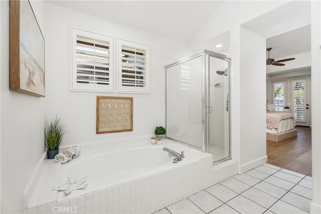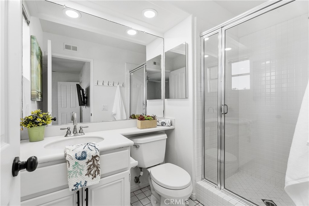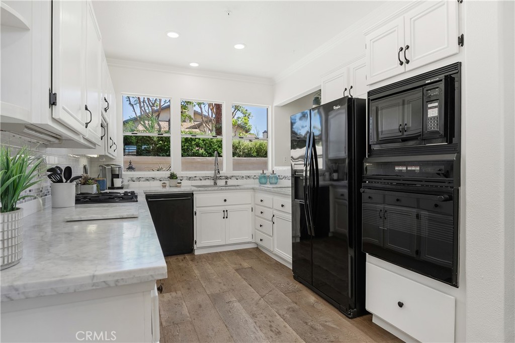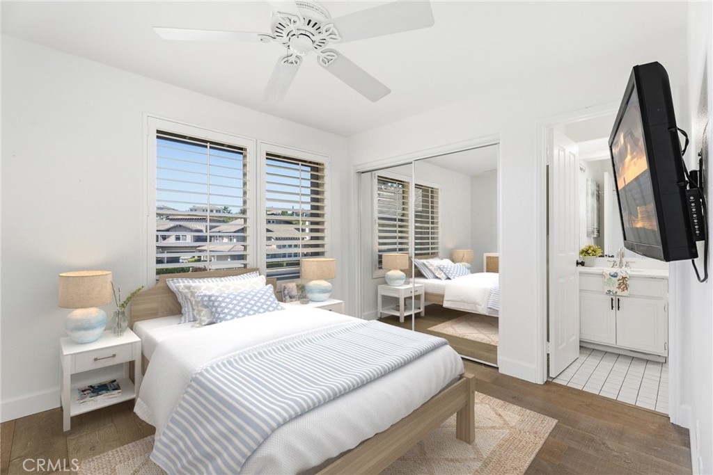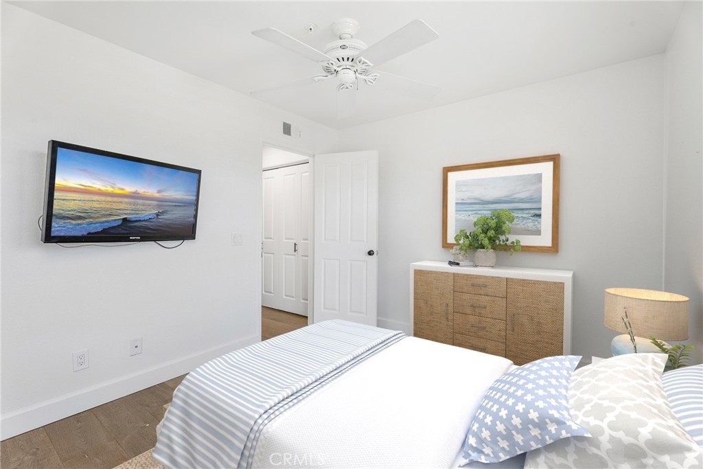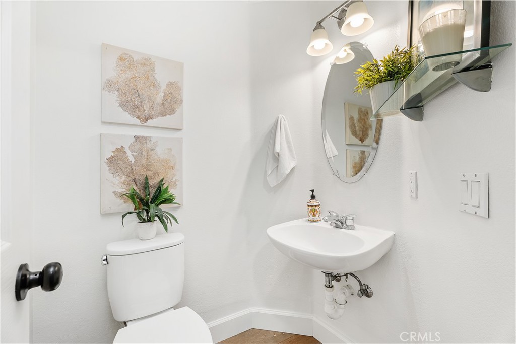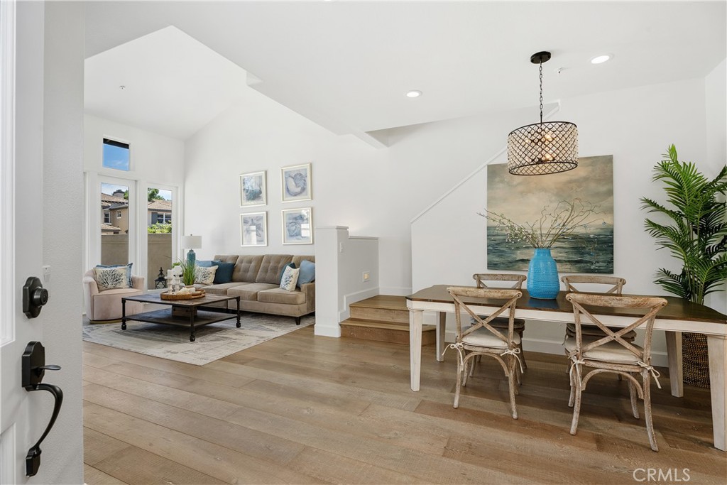 This two-bedroom, two-and-a-half-bathroom townhome located in the gated community of Cameray Pointe in Bear Brand Ranch boasts light-filled interiors with high ceilings, creating an airy and open feel throughout. As you enter the home you are welcomed with soaring ceilings and high windows introducing ample natural light while preserving privacy and maximizing usable wall space. The living area features built-in shelving, a cozy fireplace and French door leading to the back. Stepping outside, the large enclosed patio offers additional living space, perfect for outdoor relaxation or entertaining. The engineered wood flooring lend a contemporary aesthetic, complemented by new paint throughout. The kitchen features marble countertops, breakfast nook and pantry plus a large window overlooking the lovely hardscaped patio with custom pavers and a gate access to the community. The primary bedroom suite includes an en-suite bathroom and a spacious walk-in closet, as well as a cozy fireplace, providing a private retreat. The second bedroom also features an en-suite bathroom, ensuring privacy and convenience. Centrally located between bedrooms you will find an upstairs full-size laundry closet for added convenience. Cameray Pointe townhomes have access to the community's amenities, including a pool and spa, offering a refreshing respite on warm days. The gated community and private setting provide a serene and secure living environment. All of this and located within walking distance to Ocean Ranch Shopping center with fine and casual dining, a gym, Trader Joe's, Cinepolis and much more!
