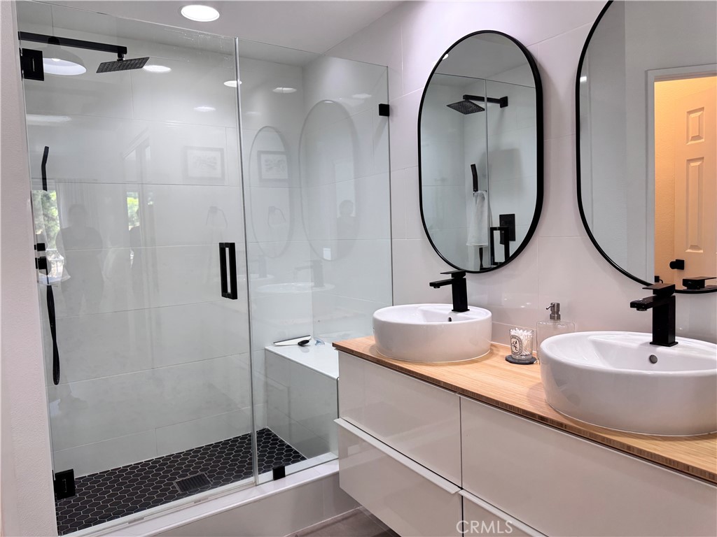 Welcome to this light and bright updated Beauty! This is a 2-bedroom 2-story townhome with a large loft and 2.5-bathrooms in the heart of South Mission Viejo. With 1,473 square feet of thoughtfully designed living space and a spacious two-car garage, this home offers comfort, style, and convenience. Step inside to find new wood-style flooring throughout most of the home and a soaring 2-story ceiling. You will fall in love with the fully renovated kitchen featuring quartz countertops, stainless steel LG appliances and modern cabinetry. Upstairs features two spacious bedrooms and a versatile loft--ideal for a home office or guest space. The primary suite offers a balcony and the bathroom boasts an upgraded walk-in shower, dual sinks and upgraded vanities and dual mirrored wardrobe closets, while the second bathroom features a brand-new tub and stylish finishes throughout. The second bedroom has an en suite. Additional upgrades include all-new lighting, mirrors, toilets, newer air conditioning and furnace. The full size laundry is in the garage which is equipped with loads of storage shelves. Enjoy a peaceful setting on the refurbished private patio with added privacy screens on the fence. Community amenities include a pool and spa, shower, and plenty of lounging chairs, plus an abundance of guest parking. Located within walking distance to highly-rated Bathgate Elementary and just minutes from shopping, dining, and parks. This turnkey home is move-in ready--washer, dryer, and refrigerator are all included. Don't miss your chance to rent this stunning townhome in one of Mission Viejo's most desirable neighborhoods! Mission Viejo Lake Privileges offered.