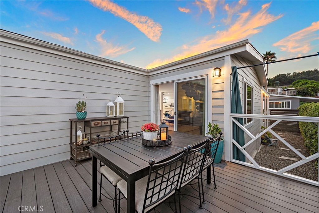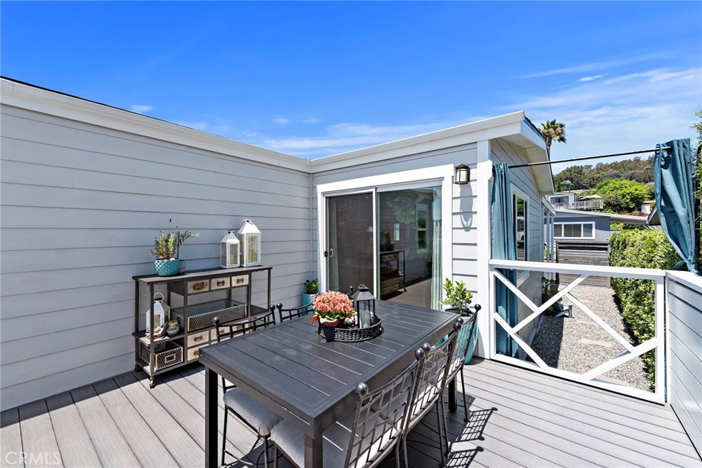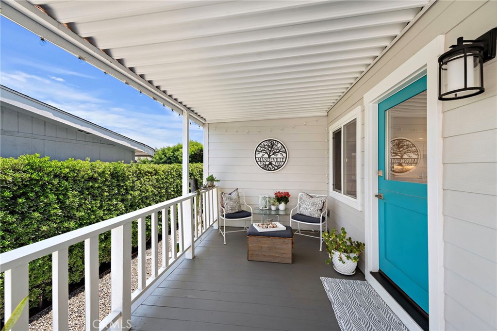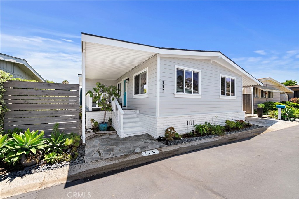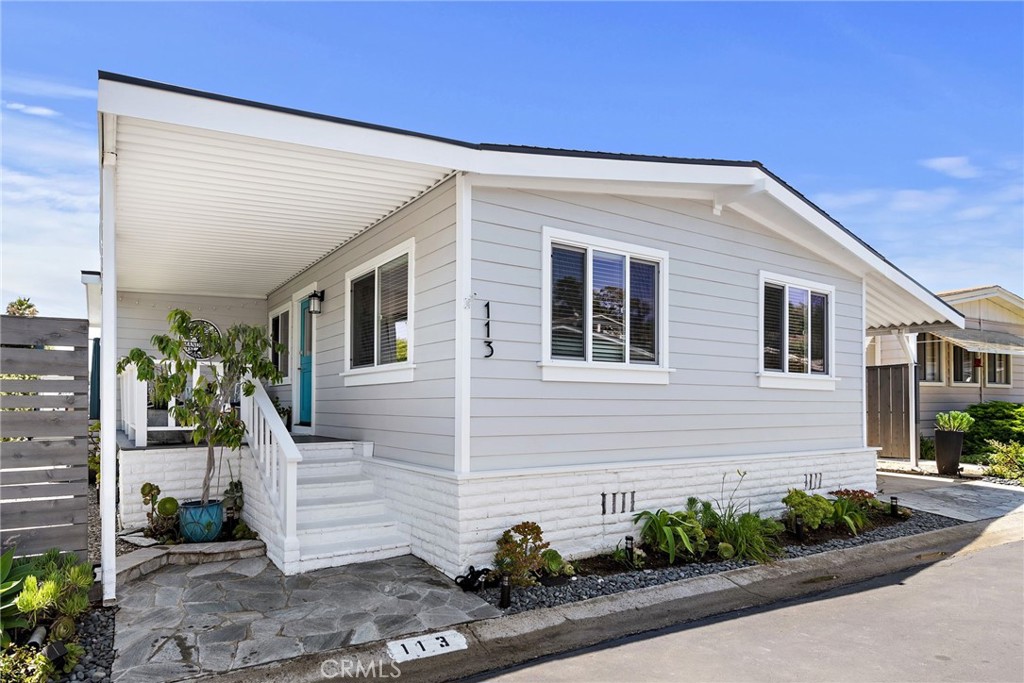Come home to this spectacular newly remodeled open, light and bright home with coastal charm and a flowing floor plan. What's not to love? You are welcomed by a stunning roomy front porch and a charming Dutch door entry. Enjoy roomy outdoor living and sunset views on patios with new California Bamboo decking both front and back. Features: Hillside views from the living room, bedroom and decking. New dual-pane windows, and sliders. Formal dining area perfect for entertaining. Expansive kitchen open to the living room, dining and formal entryway. Quartzite and marble countertops. Stainless steel appliances. Large island with eating counter. Customized bathrooms with high-end finishes. Dual sinks with marble counters, large walk-in shower and privacy toilet in the primary bathroom. Central air conditioning for year-round comfort. New custom fireplace and decorative wall for those cozy evenings. Shiplap decorative walls add to the coastal charm. Lighted wardrobe closets. New decorative doors, trim, and baseboards throughout. Luxury vinyl plank flooring throughout. Added recessed lighting and new light fixtures for that modern touch. New plumbing. New Electrical. All interior walls have smooth finishes. New James Hardie Siding; New Quality Roofing; New Driveway - this is not your average manufactured home. This is a 'one of a kind' home with a coastal, warm modern vibe! Owners gutted and customized in 2018/19, this home blends modern amenities with warm coastal charm, making it the perfect retreat. Offered at a starting asking price of $650,000. Lease space only $859.43/month and under Rent Control. Financing available with 20% down. Off Ortega it is the 3rd street up - La Paloma is the name of the street.