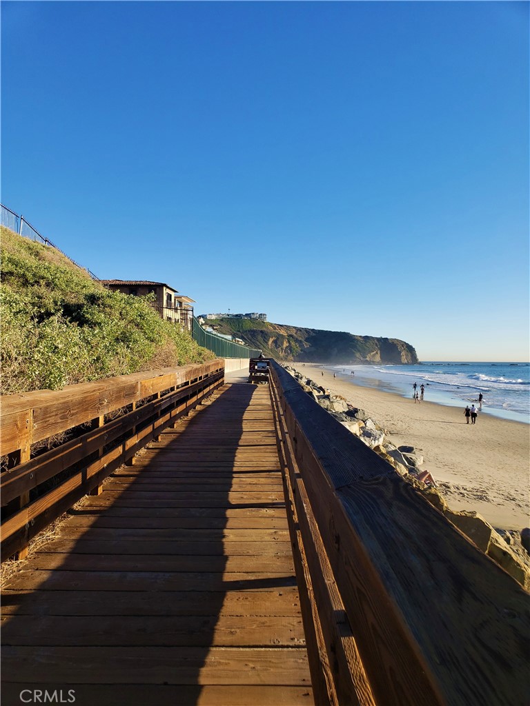 JUST STEPS TO STRANDS BEACH and BEAUTIFUL Dana Point Headland walkways! Lower level, end unit, 2 Bedrooms, 2 Bathrooms, light and bright kitchen, large living area, two patios and inside laundry. This newly painted home features updated kitchen and bathrooms with granite counters, newer dual pane windows and sliders, newer upgraded tile flooring, new designer carpet and upgraded baseboards and molding. Each room has a ceiling/light fan. Full size washer and dryer and refrigerator included. ONE OF THE BEST LOCATIONS OF THESE UNITS TO COME UP IN A LONG TIME with excellent sun exposure at end of units for added privacy and serenity. Niguel Beach Terrace is located on the OCEAN side of Pacific