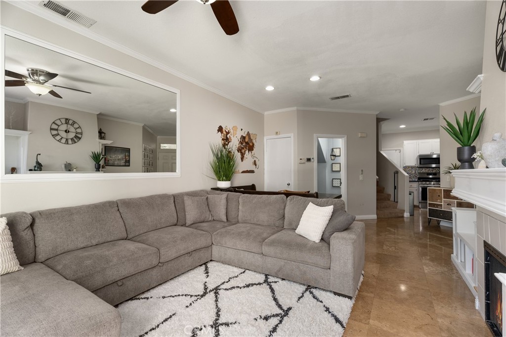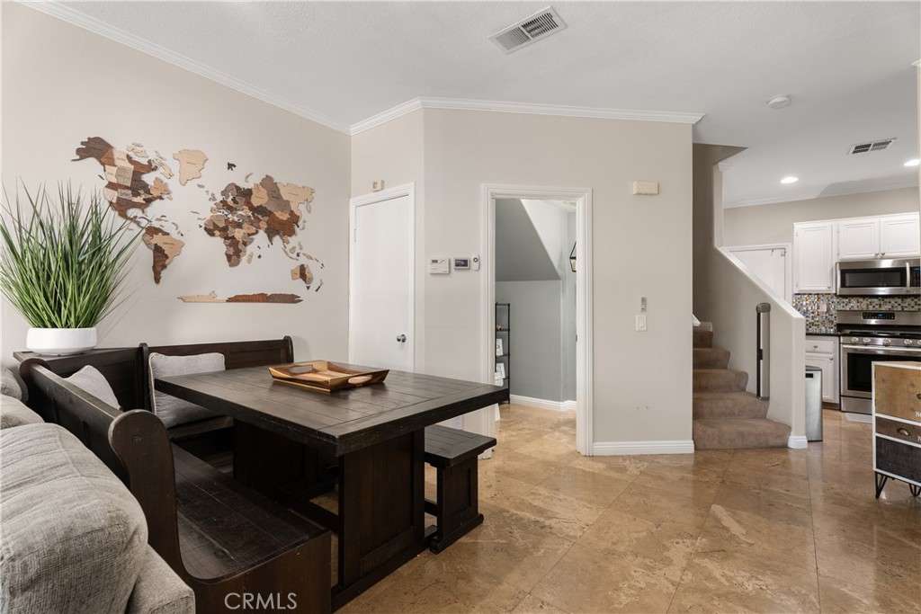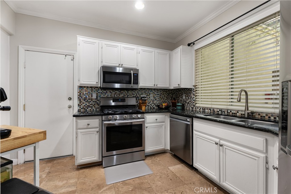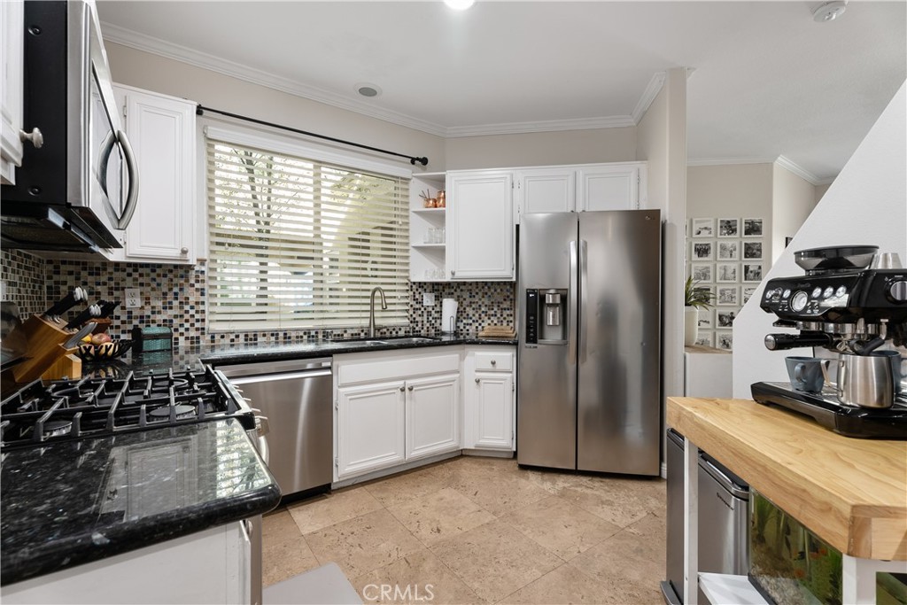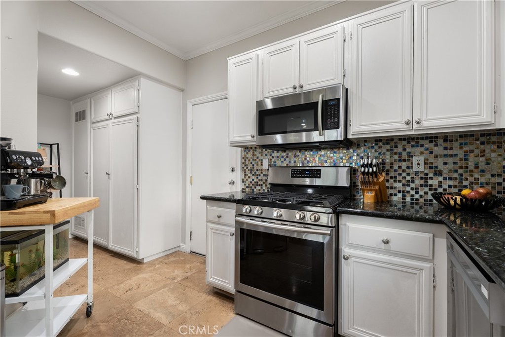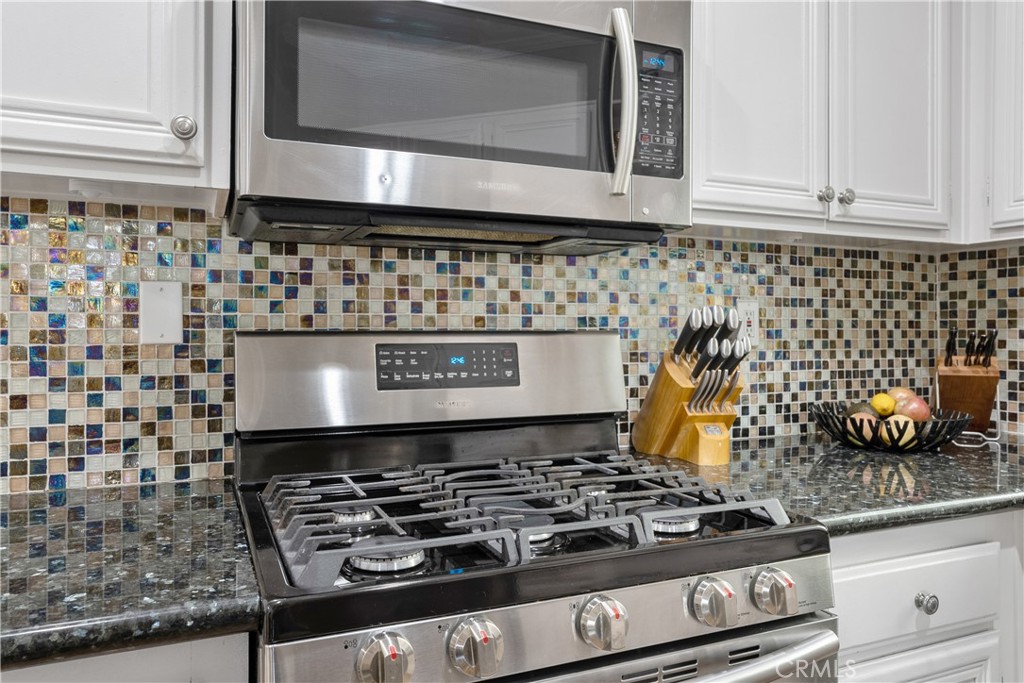 The heart of the home, the kitchen, is upgraded with stainless steel appliances, granite countertops, a pantry, and an eye-catching backsplash. These modern touches make the kitchen not only functional but also a stylish focal point of the home.