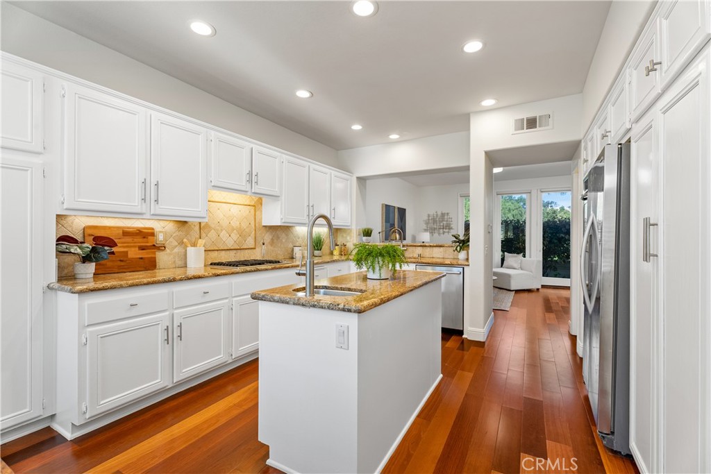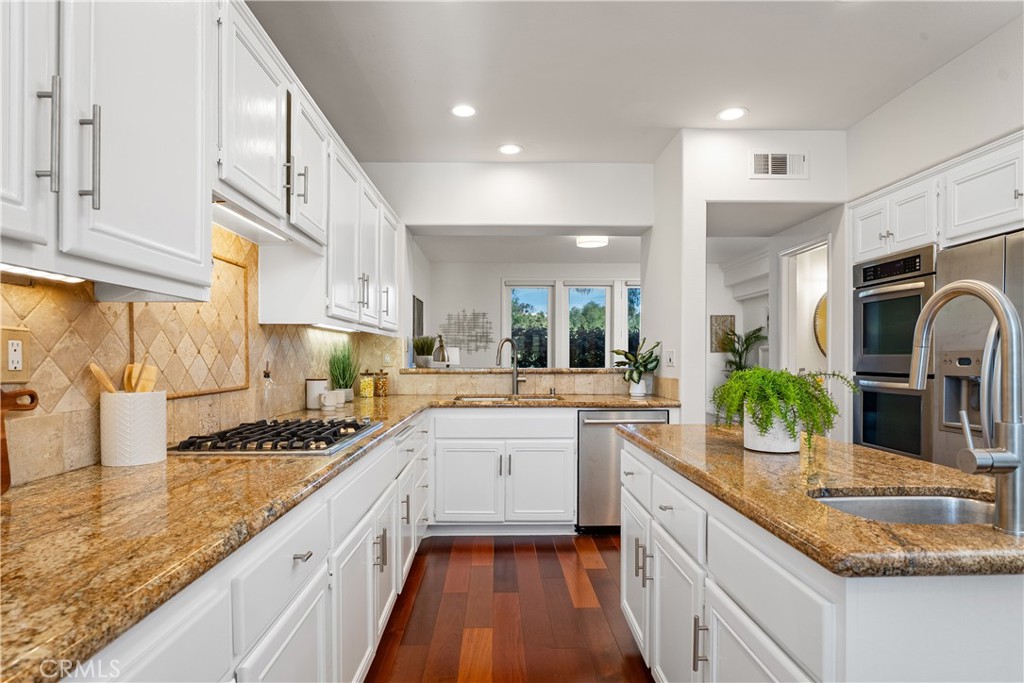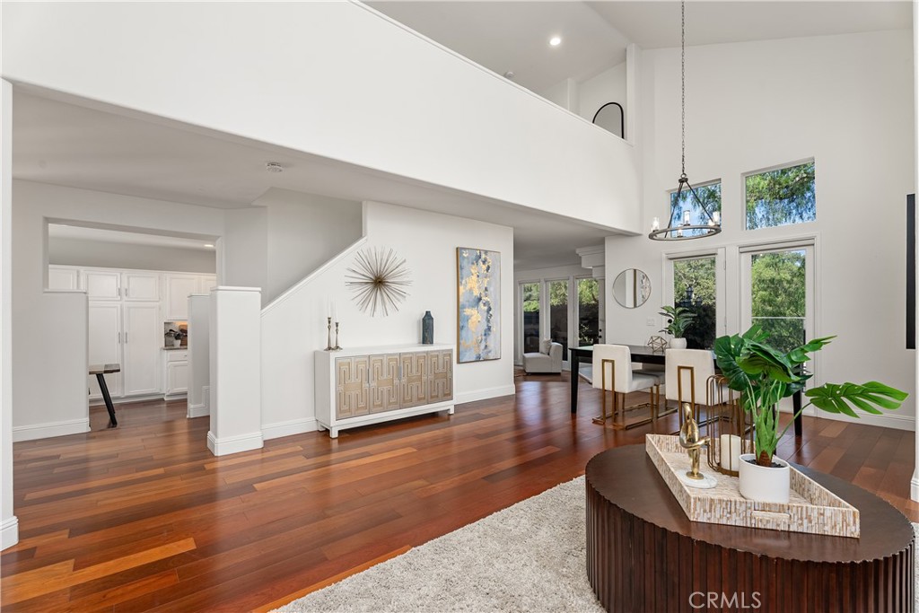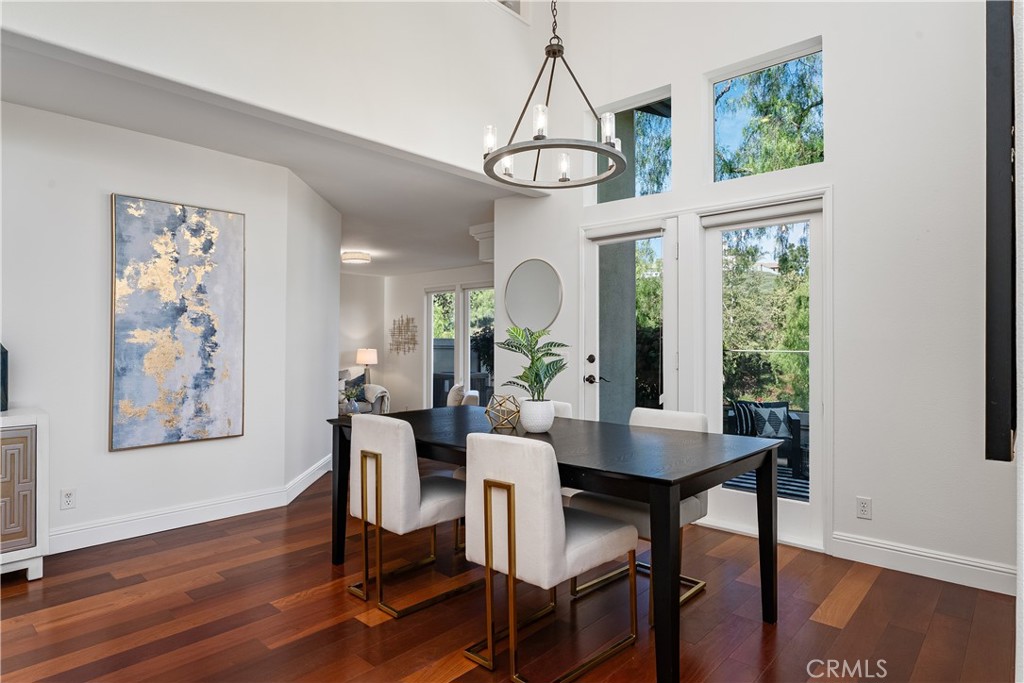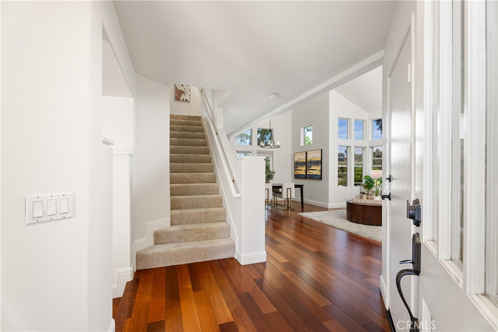 Nestled within the gated community of Cameray Heights, this light-filled 3-bedroom residence offers approx 2200 sq ft of spacious living with soaring ceilings and an open, airy floor plan designed for comfort and functionality. Impeccably maintained and thoughtfully refreshed with new interior paint, recessed lighting, Brazilian Cherrywood flooring throughout the entry, living room, family room, dining room and kitchen, plus brand-new carpet on the stairs and throughout the upstairs hallway and bedrooms. This home presents beautifully and is move-in ready. The oversized backyard is a standout feature -- private, usable, and enhanced by scenic hills views, creating an ideal setting for outdoor entertaining or peaceful relaxation. with access to community greenbelt. Additional highlights include a 2-car garage with direct access and room for storage, guest parking within the gated community, and close proximity to the neighborhood pool and spa -- conveniently nearby yet positioned for privacy. Ideally located within walking distance to Ocean Ranch Shopping Center, featuring Cinepolis Luxury Cinemas, Trader Joe's, popular coffee shops, Curl Fitness, Angelina Bottega, boutique retail, and a variety of casual and fine dining options. Just minutes from world class beaches, resorts, biking and hiking trails and Laguna Niguel Regional Park, Wood Canyons Wilderness Park, top-rated schools, and major commuter routes. Well maintained and lightly lived in through the years, this home represents exceptional value in one of Laguna Niguel's most desirable gated neighborhoods. A rare opportunity to own a spacious view property with a large yard and walkable lifestyle amenities.
